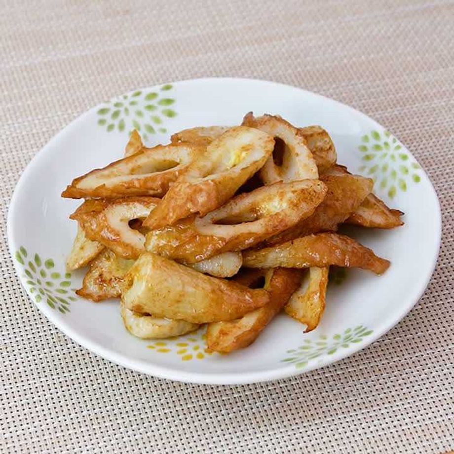フライパンにマヨネーズを入れて中火で熱し、ちくわを加えて表面に焼き色がつき、油がなじむまで炒める。しょうゆを加えて炒め合わせる。