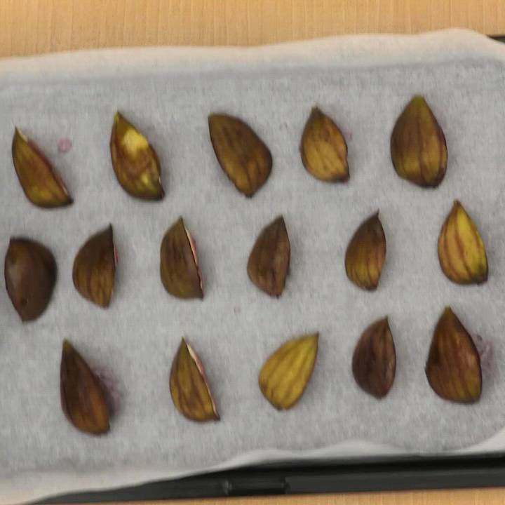 100℃に予熱したオーブンで1時間ほど焼く。取り出していちじくを裏返し、さらに1時間ほど焼く。