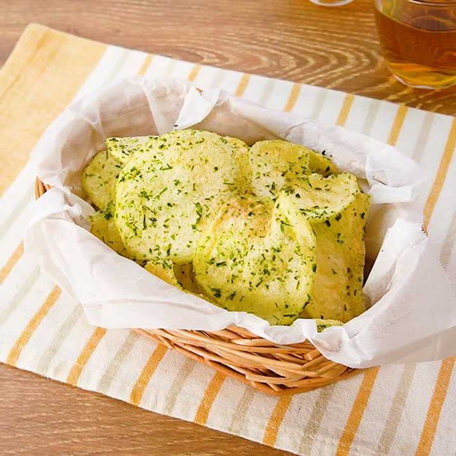 スライサーを使わず、包丁で作るポテトチップスです。少し厚めに切ることで食べ応えも出てじゃがいものおいしさをより味わえます♪おやつにもぴったりの一品です。