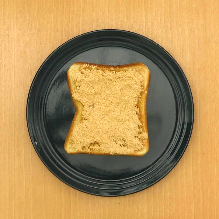 食パンは焼き色がつくまで焼く。熱いうちにバターを塗り、1を全体にかける。