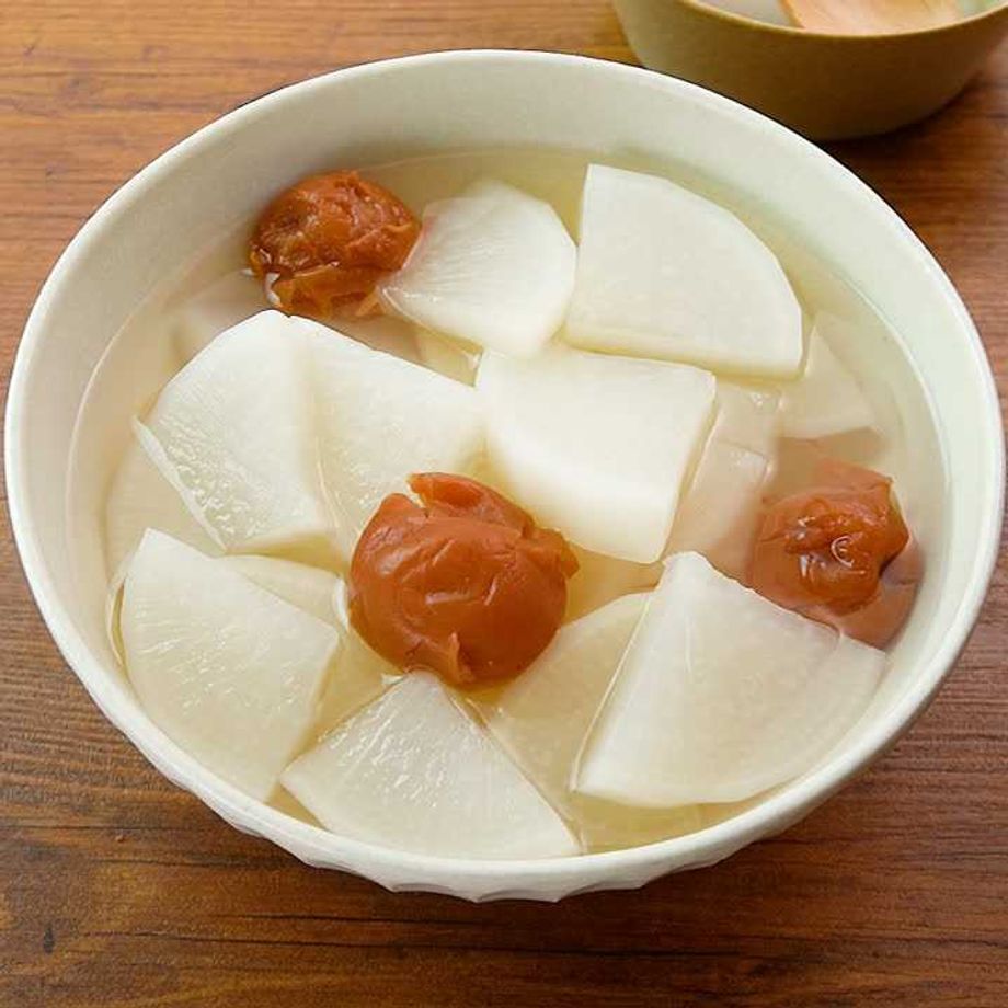不摂生で便秘気味なときは梅流しで罪悪感も流します〜〜 レシピ通りだとだいぶ味薄め❓だけどこれくらいが丁度良い 大根半分は余裕で食べられます🙆🏻♀️次は2倍で作りたいな まじでトイレこもることになるから一日予定ない日に食べよう三毛猫かあさん