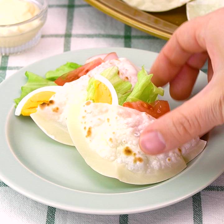 餃子の皮をピタパンに見立てた一品をご紹介!餃子の皮が余ったときにもおすすめのレシピです。餃子の皮は焼くことでふくらむため、その性質を活用します。お好きな具材を詰めてお召し上がりください♪