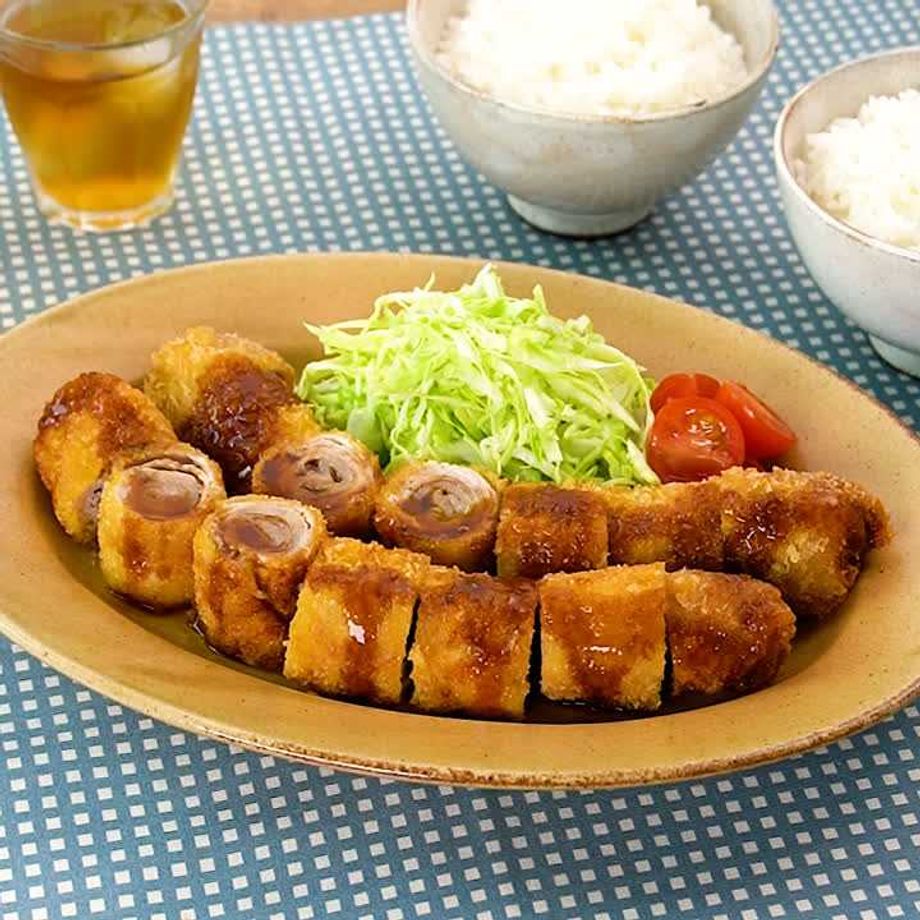 薄切り肉をロールすることで食べ応えのあるトンカツに♪やわらかく仕上がるのもうれしいポイントです。