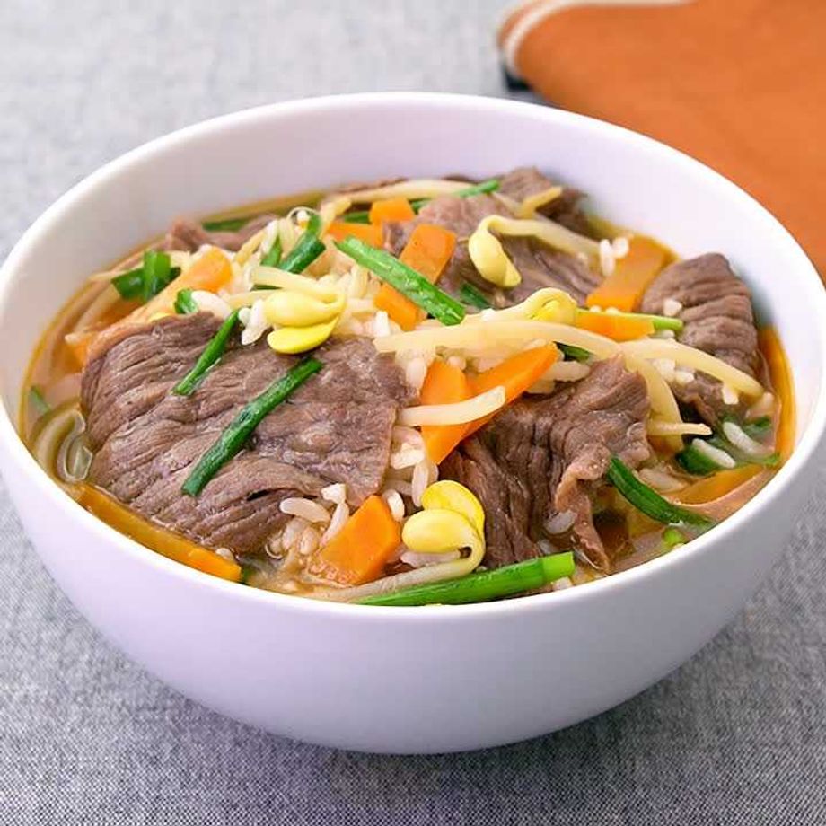 辛い牛肉スープにごはんを入れた韓国料理です!コチュジャンの辛さと牛肉の深い旨味がごはんに染み込んで絶品です♪簡単に作れるのでぜひお試しください。【減塩対策対応レシピ】※減塩対策ついてはQ&Aをご参照ください。