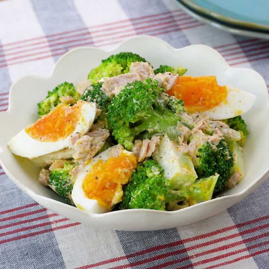 ブロッコリー、卵、ツナを使って作るゴママヨ風味のサラダをご紹介!家庭でもデリ風サラダを手軽に楽しむことができます♪ツナはハムに代用してもOK!おもてなしにもぴったりの一品です。