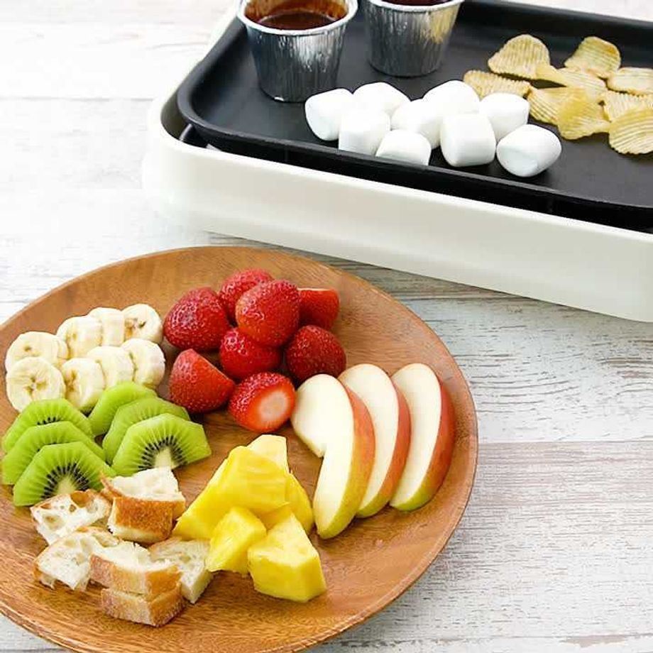 ホットプレートで作るチョコレートフォンデュのレシピをご紹介します!ホットプレートなのでチョコソースが最後まで固まることなくお楽しみいただけます♪お好きな具材でぜひ作ってみてください。