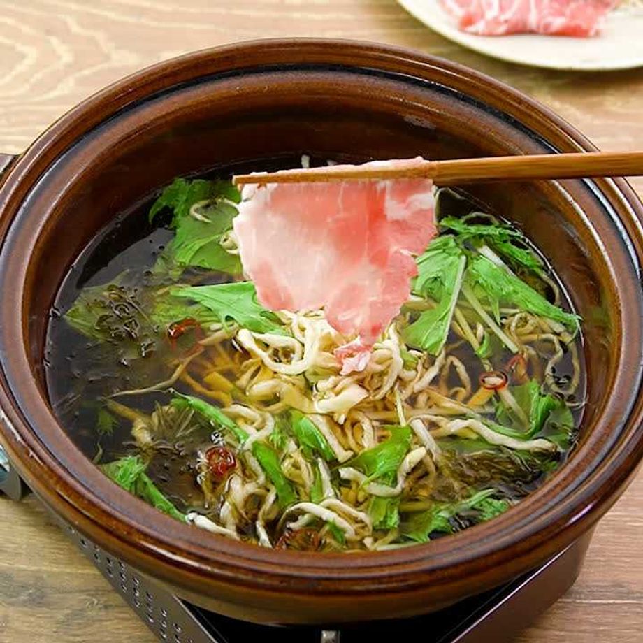 鍋に☆を入れて中火で熱し、煮立ったら刻み昆布を加えてさっと煮る。切り干し大根、水菜を加える。豚肉をくぐらせながら火が通るまで煮る。