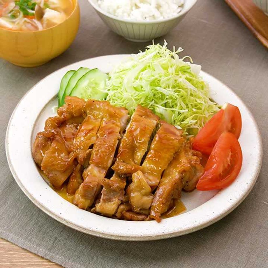 照り焼きチキンをメインにした定食セットのレシピです!切り干し大根の味噌汁と一緒に夜ごはんのメニューにいかがでしょうか?
