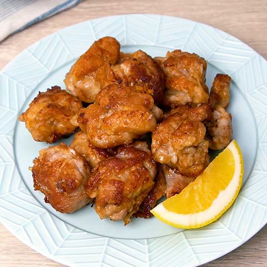 下味をつけた豚こま肉をひとくちサイズに丸めて作るからあげレシピ!包丁要らずでお好みの大きさでアレンジできます♪お好みでレモンを絞ってお召し上がりください。