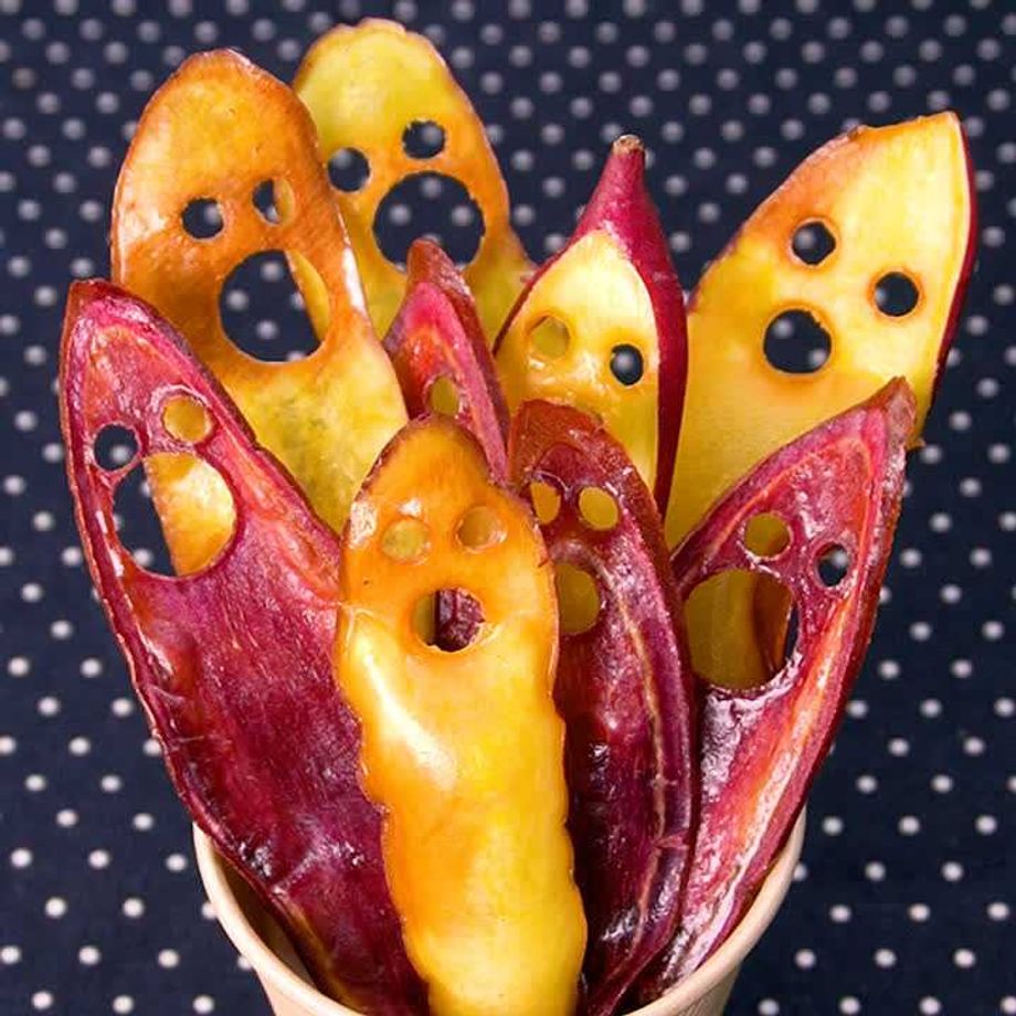 さつまいもの自然な甘みとバターのまろやかさがマッチして思わず手が止まらなくなる1品です♪さつまいもと紫芋の2種類を使用することで彩りがきれいな仕上がりになります。テーブル映えすること間違いなしです!