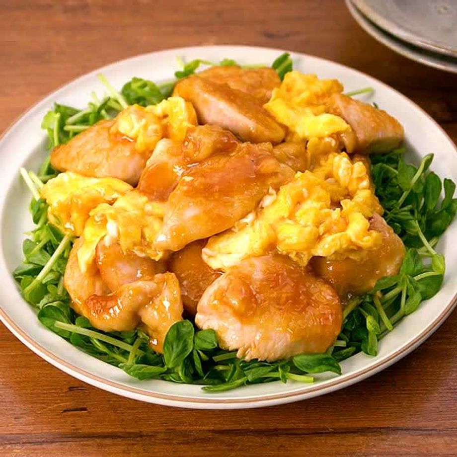 鶏むね肉の旨味が卵にしみ込み、口に入れた瞬間に優しいコクと香ばしさが広がります。豆苗でかさましすることで食べごたえ抜群!甘じょっぱいたれがからんで思わずごはんが進みます♪【減塩対策対応レシピ】※減塩対策ついてはQ&Aをご参照ください。