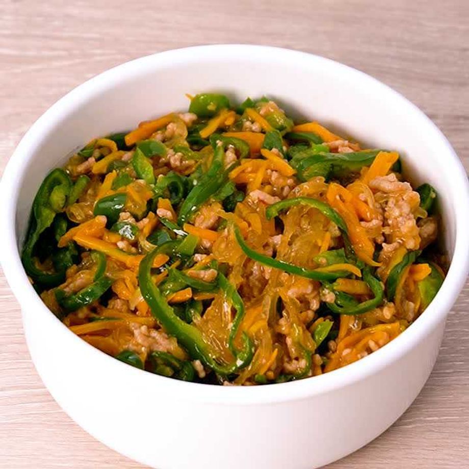 【冷蔵3日/冷凍14日】ピリッと旨辛!ごはんがすすむマーボー春雨のご紹介♪ひき肉のコクと豆板醤の辛みが春雨によく絡み、やみつきになる味わいです!