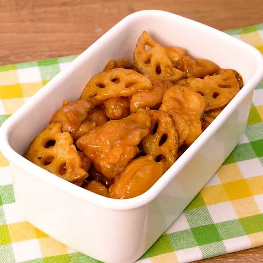 【冷蔵3日/冷凍14日】カリカリに素揚げしたれんこんとジューシーな鶏もも肉をたっぷりの甘酢だれでからめたごはんがすすむ一品♪甘酸っぱい味わいが食欲をそそり、冷めてもおいしいのでお弁当のおかずにもおすすめです!