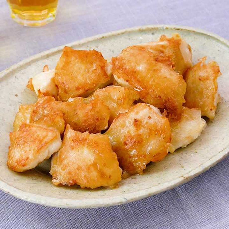白だしで簡単味付けをした鶏むね唐揚げをご紹介!調味料を水分がなくなるまで揉み込むことで漬け込み不要でもしっかりと味が染みます♪