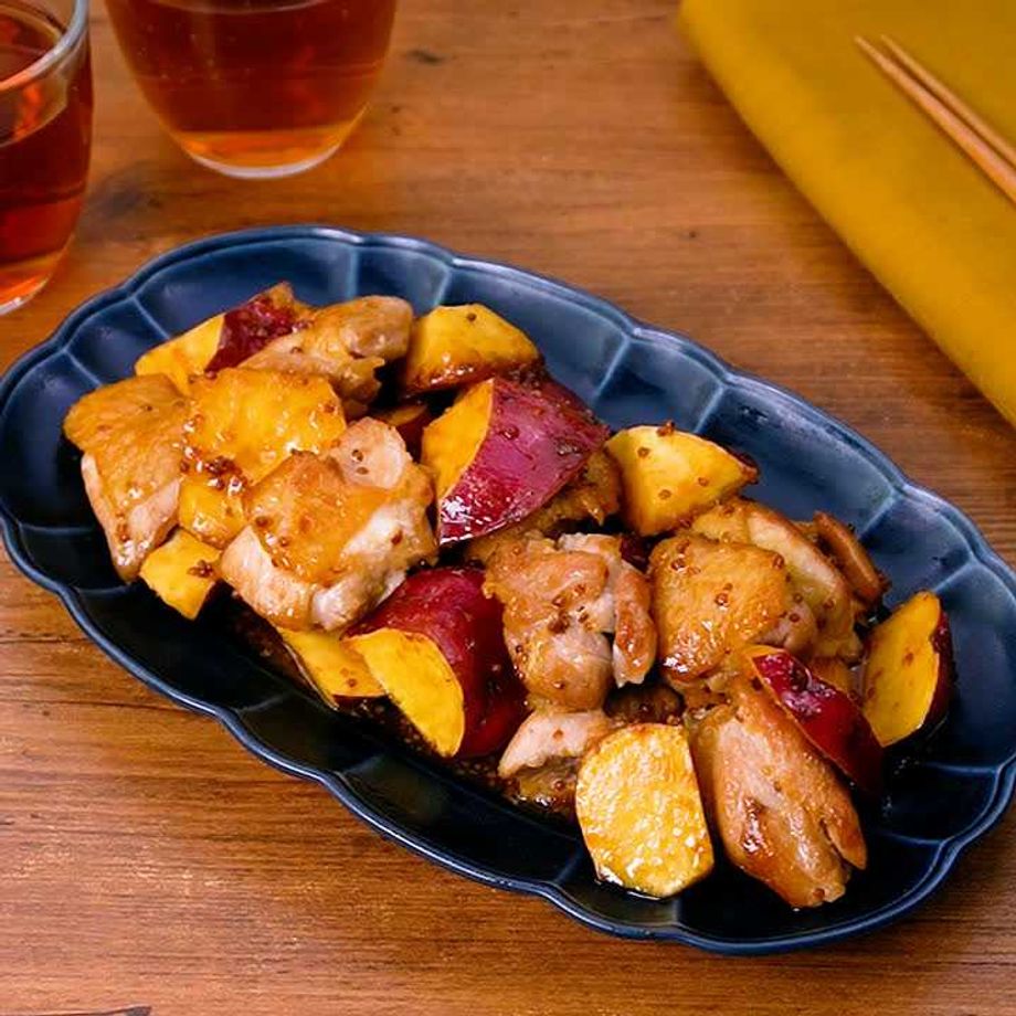 皮をパリパリに焼いた鶏肉とさつまいもを合わせた粒マスタード炒めのご紹介です♪ ホクホク甘いさつまいもに、粒マスタードの香りと酸味がからんで食欲をそそる一品に。ボリュームもしっかりあり、秋の食卓を彩るおかずとしてぴったりです♪ 【本レシピはプレミアム献立用レシピです】プレミアム献立は管理栄養士が栄養バランスや塩分量を計算して、食のプロが献立を作成しています。主菜、副菜、汁物が揃ったプレミアム献立で本レシピを作るとより美味しく食べることができます。ぜひプレミアム献立で献立内容をチェックしてみてください。