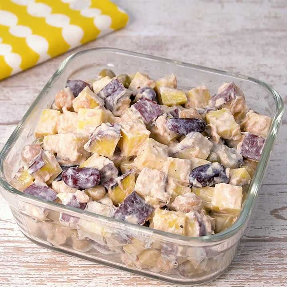 【冷蔵3日】さつまいものやさしい甘さに、ツナのうま味と豆の食感が合わさったヨーグルトサラダです。あと一品欲しいときにおすすめのさっぱり副菜です♪1人分あたり食物繊維6.4gとれるのもうれしいポイント!
