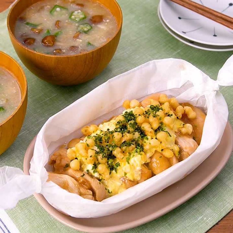 レンジで作る揚げないチキン南蛮をご紹介!揚げない代わりに揚げ玉を仕上げにたっぷりのせていただきます♪ 【減塩対策対応レシピ】※減塩対策についてはQ&Aをご参照ください。