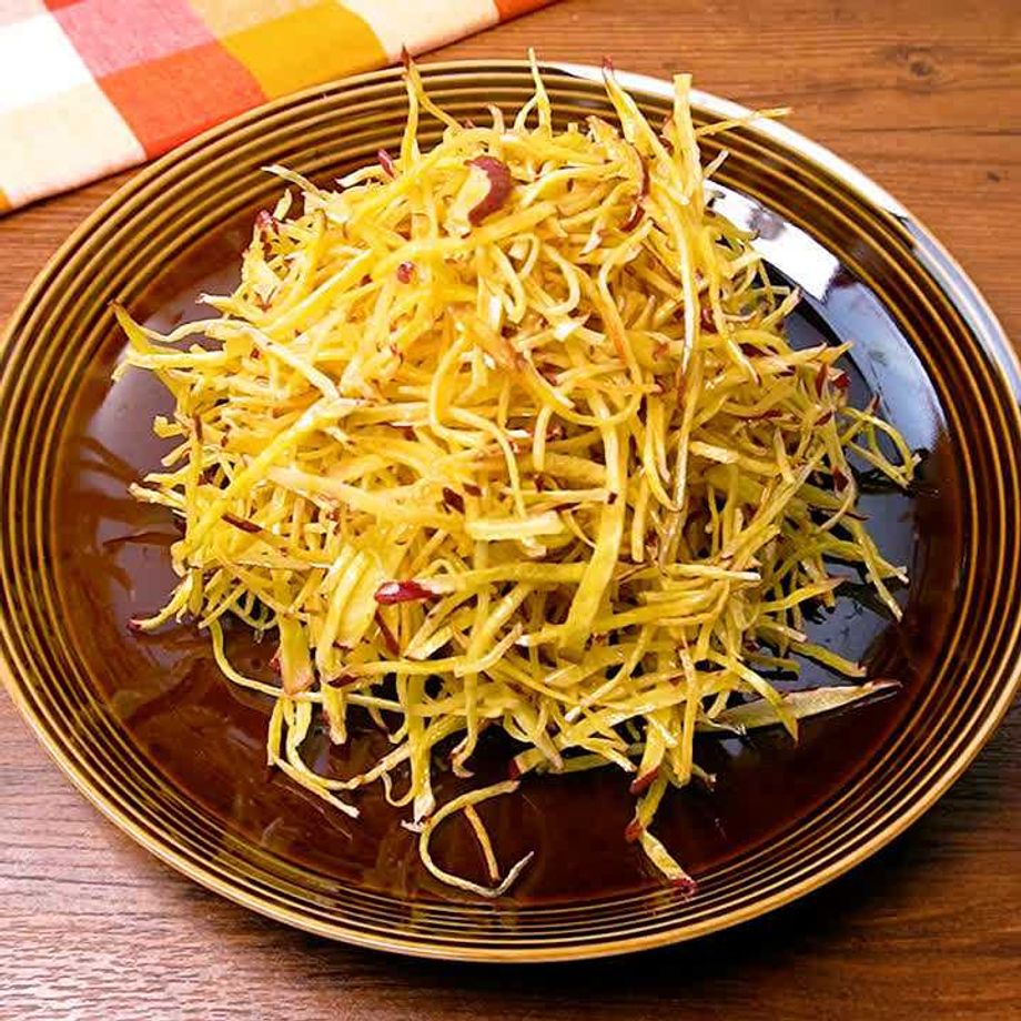 細く切ったさつまいもをカリッと揚げてけんぴにします!アイスクリームをトッピングしたり、塩を少し振って食べるのもおすすめです♪