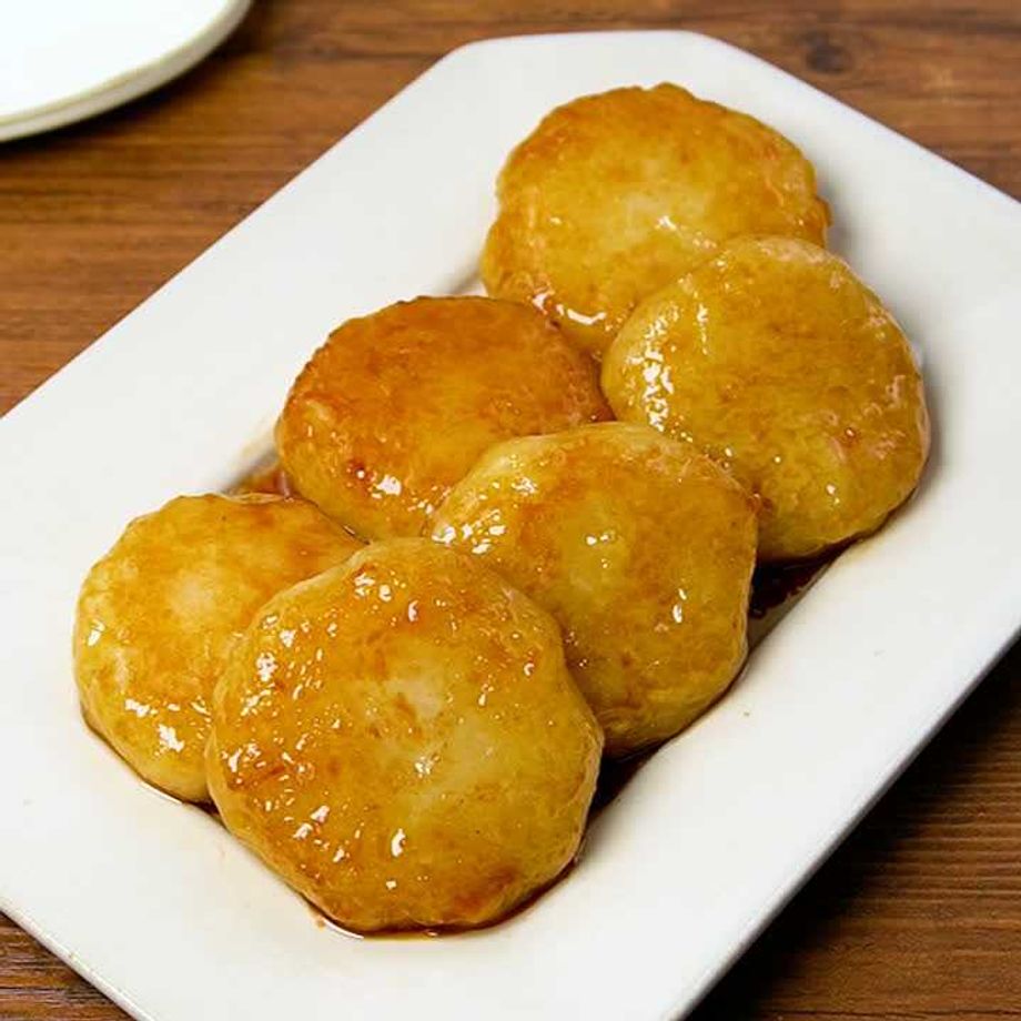 潰した長芋を焼いて甘辛いたれをからめました!片栗粉を混ぜて焼くことで表面はカリっと中はねばとろ食感です。おやつやおつまみにおすすめ♪