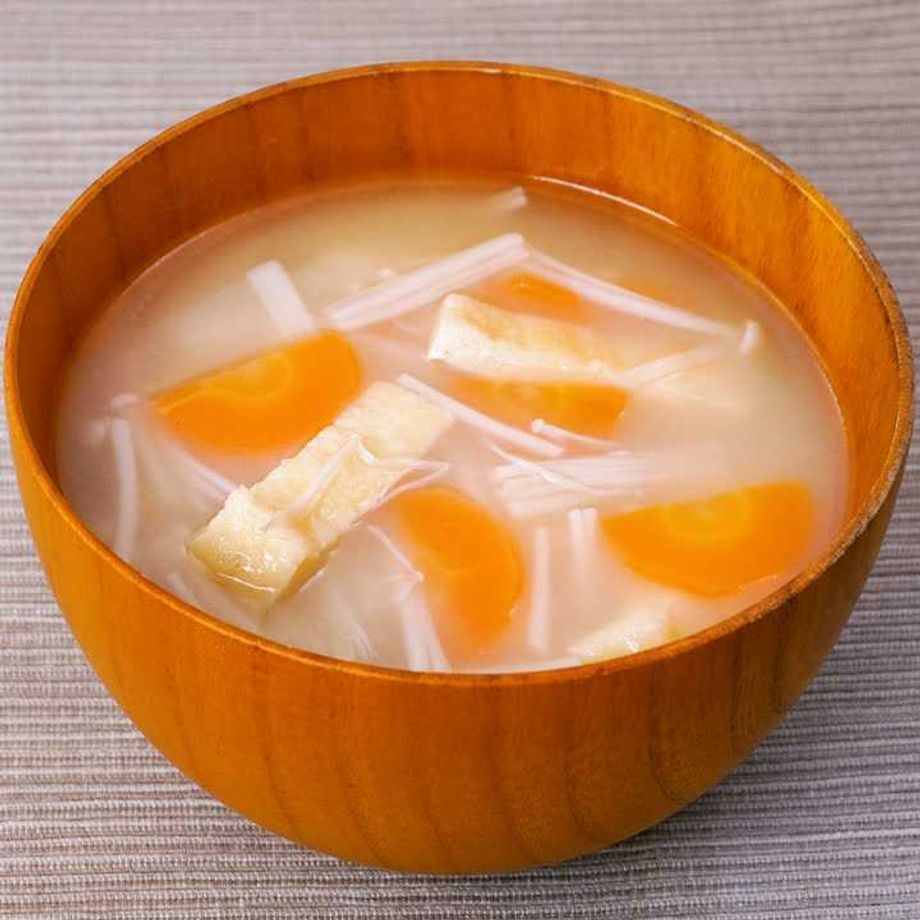 えのき、油揚げ、にんじんを使ったやさしい味わいの味噌汁です。シンプルなので、日々の食卓にぴったりの一杯です♪ 【本レシピはプレミアム献立用レシピです】プレミアム献立は管理栄養士が栄養バランスや塩分量を計算して、食のプロが献立を作成しています。主菜、副菜、汁物が揃ったプレミアム献立で本レシピを作るとより美味しく食べることができます。ぜひプレミアム献立で献立内容をチェックしてみてください。
