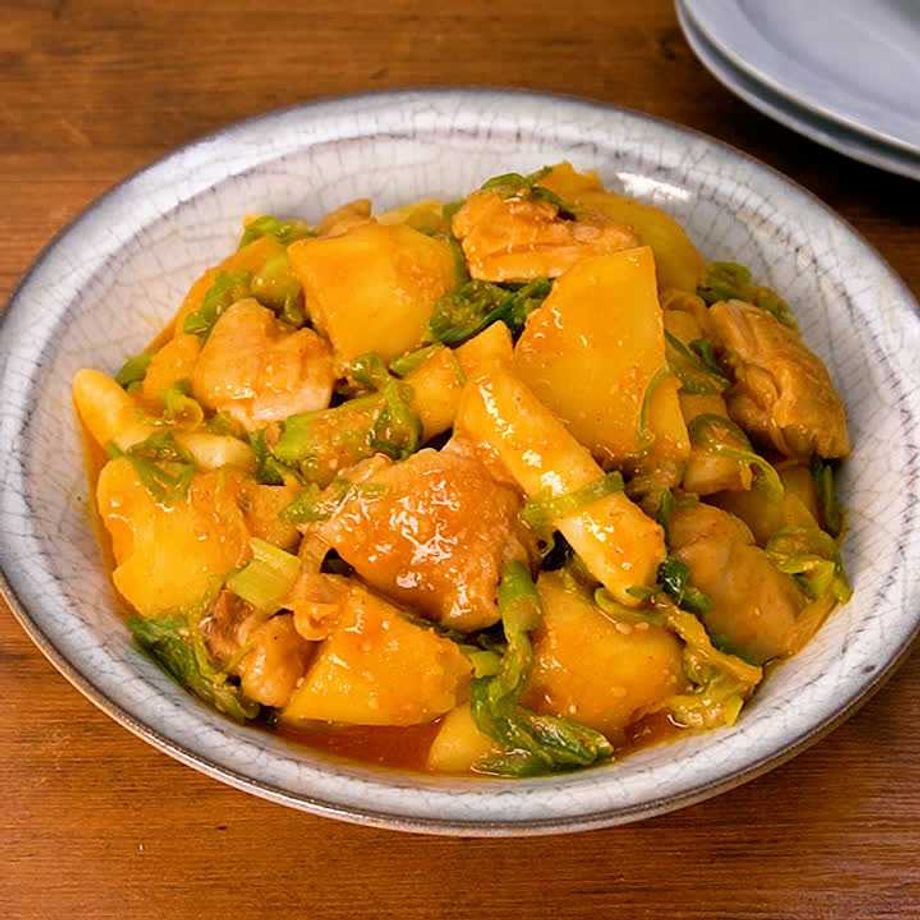 韓国の家庭料理「カムジャタン」は、豚の背骨肉とじゃがいもを煮込んだピリ辛スープ。今回は鶏もも肉とトッポギを使って、手軽に楽しめるカムジャタン風煮込みに仕上げました!コクのあるピリ辛味がじゃがいもと相性抜群です! 【本レシピはプレミアム献立用レシピです】プレミアム献立は管理栄養士が栄養バランスや塩分量を計算して、食のプロが献立を作成しています。主菜、副菜、汁物が揃ったプレミアム献立で本レシピを作るとより美味しく食べることができます。ぜひプレミアム献立で献立内容をチェックしてみてください。