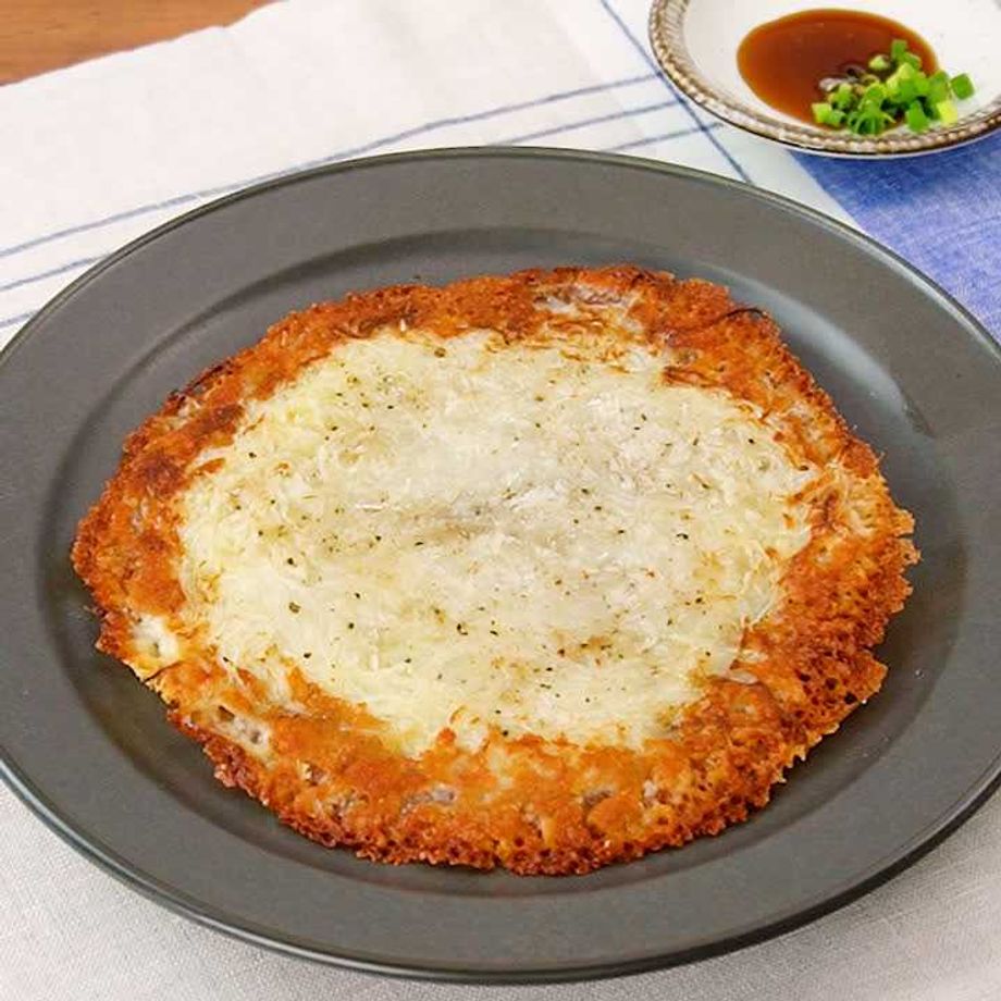 小さめのフライパンにピザ用チーズを入れて広げ、中火で熱する。ふつふつとしてきたら大根のつまを広げて入れる。