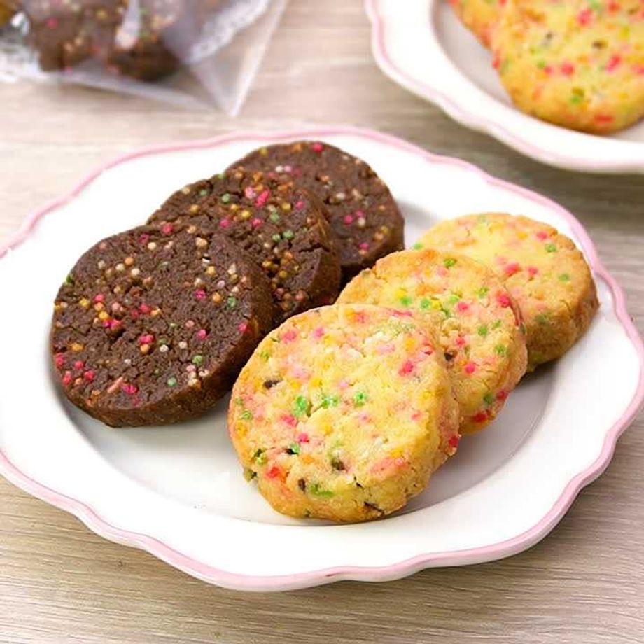 カラーチョコスプレーを練り込んだ、見た目もかわいいスイーツ♪シンプルな材料と作り方で、お菓子作り初心者でも手軽に作れます。プレゼントにもぴったりです!