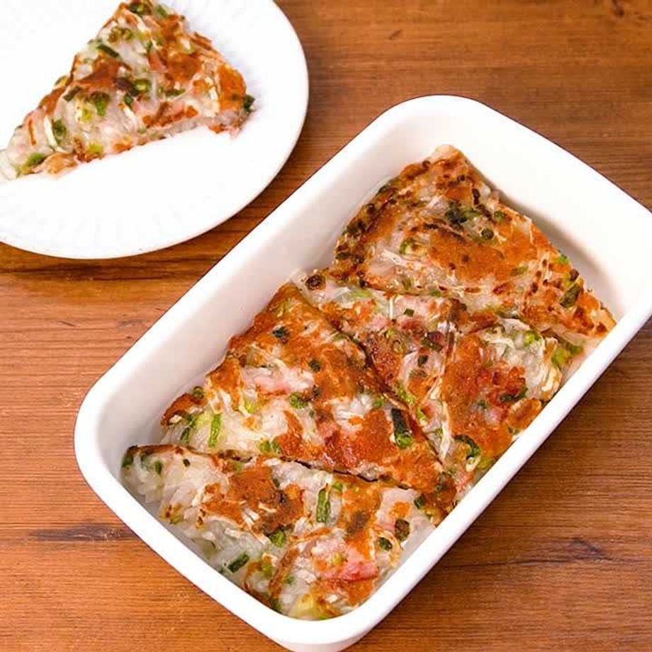 【冷蔵3日】チーズとベーコンを加えて洋風にアレンジした大根もちです♪ 千切りにした大根のシャキッと感と、もちもち食感が楽しい一品です。