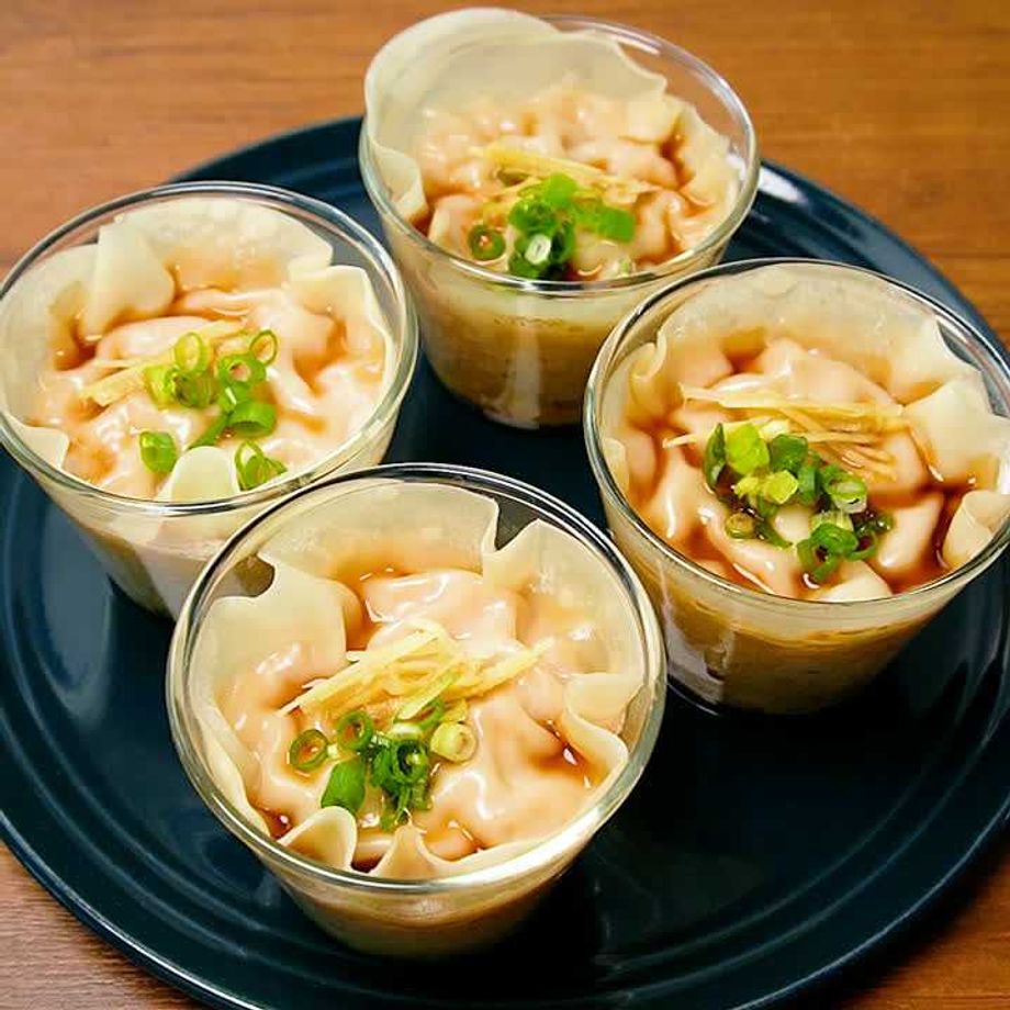 耐熱のカップに肉だねを入れて餃子の皮でふたをするだけ!包まないでカップごと蒸すから簡単で肉汁たっぷりです♪熱々でお召し上がりください。【減塩対策対応レシピ】※減塩対策ついてはQ&Aをご参照ください。