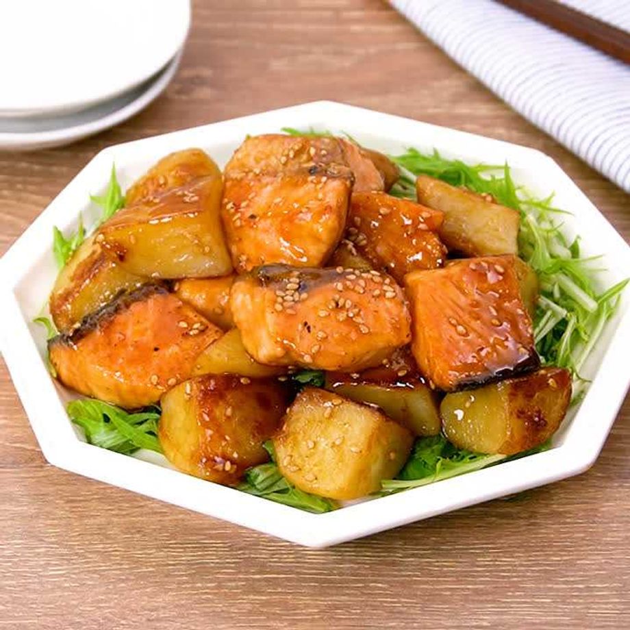 鮭とじゃがいもを使って食べ応えバッチリ!ポン酢しょうゆで簡単に味が決まります♪じゃがいもはあらかじめレンジ加熱して調理時間を短縮しましょう!