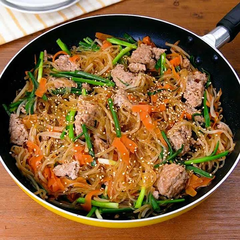 焼肉のたれで簡単に作れるチャプチェをご紹介!包丁を使わずに重ねて蒸すだけでボリューム満点のおかずが作れます♪ひき肉は崩さずに入れることでゴロゴロとした食感が楽しめます!