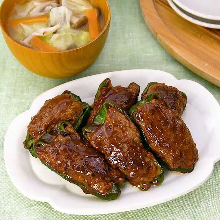 ジューシーな肉だねを詰めた定番のピーマンの肉詰めを主役にした献立です。肉だねはポリ袋の中で混ぜるので、手を汚さず洗い物も減らせて手軽に調理できます。具沢山味噌汁を合わせて、野菜もしっかり摂れる満足感のある献立です。【減塩対策対応レシピ】※減塩対策ついてはQ&Aをご参照ください。