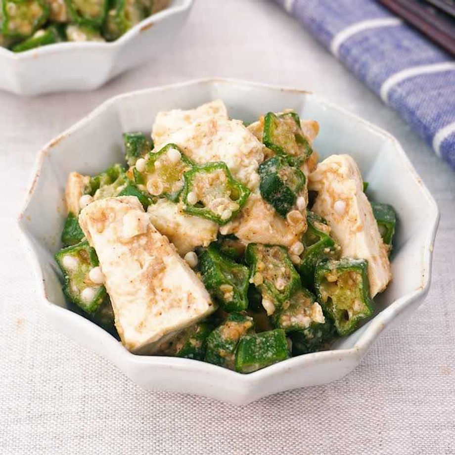 冷凍のオクラを使った手軽な副菜をご紹介!ネバネバ食感と豆腐の相性は抜群です♪ 【本レシピはプレミアム献立用レシピです】プレミアム献立は管理栄養士が栄養バランスや塩分量を計算して、食のプロが献立を作成しています。主菜、副菜、汁物が揃ったプレミアム献立で本レシピを作るとより美味しく食べることができます。ぜひプレミアム献立で献立内容をチェックしてみてください。