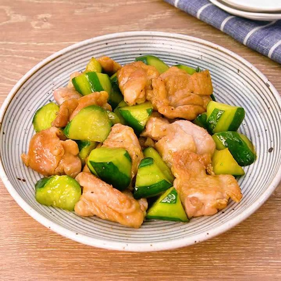 フライパンにごま油を入れて中火で熱し、鶏肉を皮目を下に入れて焼き色がつくまで焼く。肉に火が通るまで3〜4分炒め、きゅうりを加えて油がなじむまで手早く炒める。☆を加えて照りが出るまで炒め合わせる。