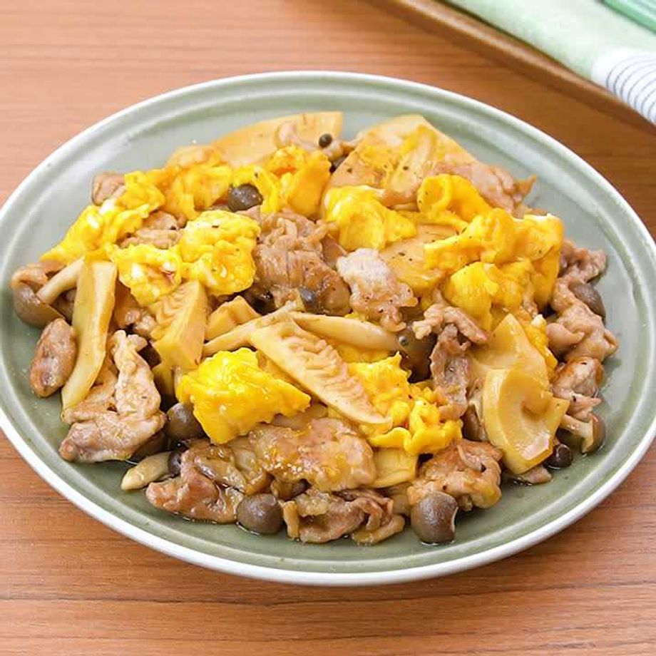 たけのこと豚肉のとろたま炒め
