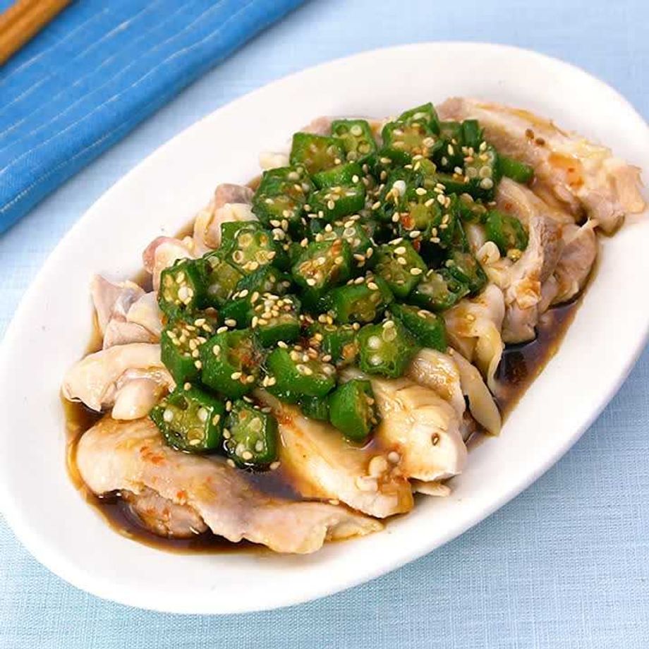 【2日目】ぷりぷりの鶏肉にピリ辛ソースが絶品のよだれ鶏!オクラのおかげでソースがよく絡みます♪鶏のゆで汁は副菜の中華スープに使用するのでとっておきましょう。 【本レシピはプレミアム献立用レシピです】プレミアム献立は管理栄養士が栄養バランスや塩分量を計算して、食のプロが献立を作成しています。主菜、副菜、汁物が揃ったプレミアム献立で本レシピを作るとより美味しく食べることができます。ぜひプレミアム献立で献立内容をチェックしてみてください。