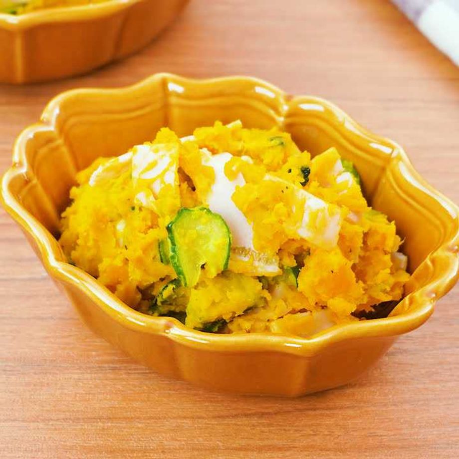 じゃがいもの代わりにかぼちゃを使った、ほんのり甘いポテトサラダ風をご紹介♪彩りも華やかで、あと一品の副菜にもぴったりです。 【本レシピはプレミアム献立用レシピです】プレミアム献立は管理栄養士が栄養バランスや塩分量を計算して、食のプロが献立を作成しています。主菜、副菜、汁物が揃ったプレミアム献立で本レシピを作るとより美味しく食べることができます。ぜひプレミアム献立で献立内容をチェックしてみてください。