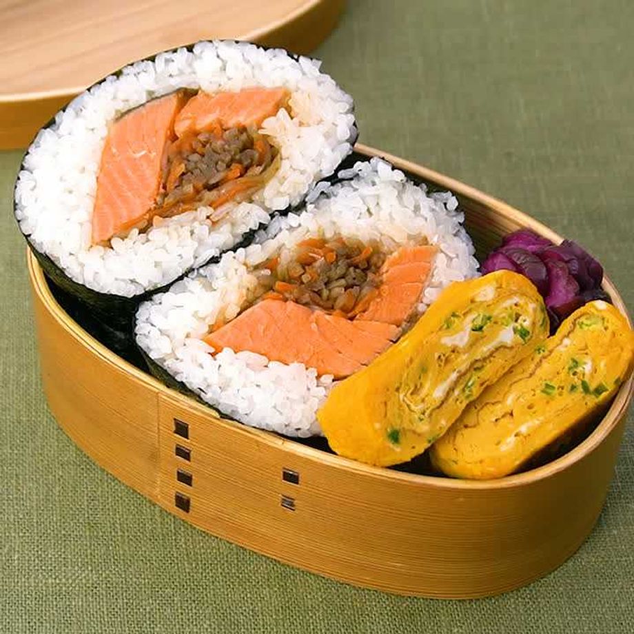 食べ応えのある爆弾おにぎりに、お弁当おかずで人気の卵焼きを詰めました♪爆弾おにぎりの具材は、塩鮭以外に唐揚げなどの冷凍食品を活用するのもおすすめです。