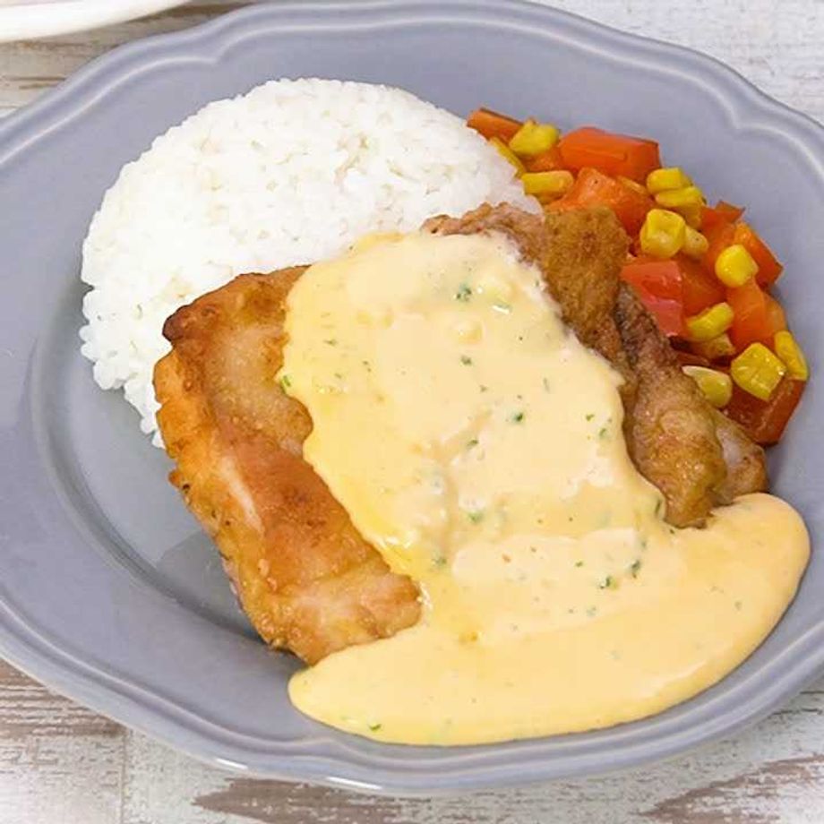 チーズソースたっぷりのチキンステーキ