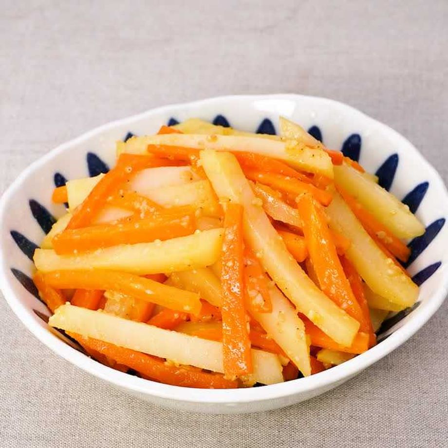 【2日目】甘辛いみそだれに香ばしいごまを合わせた、ごまみそきんぴらのご紹介!いつもと違う味付けで、定番のきんぴらに飽きてきた方にもおすすめです。コク深い味わいでごはんが進む一品♪ 【本レシピはプレミアム献立用レシピです】プレミアム献立は管理栄養士が栄養バランスや塩分量を計算して、食のプロが献立を作成しています。主菜、副菜、汁物が揃ったプレミアム献立で本レシピを作るとより美味しく食べることができます。ぜひプレミアム献立で献立内容をチェックしてみてください。