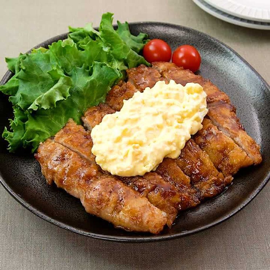 器にレタス、ミニトマトをのせ、4の豚肉をのせる。タルタルソースをかける。