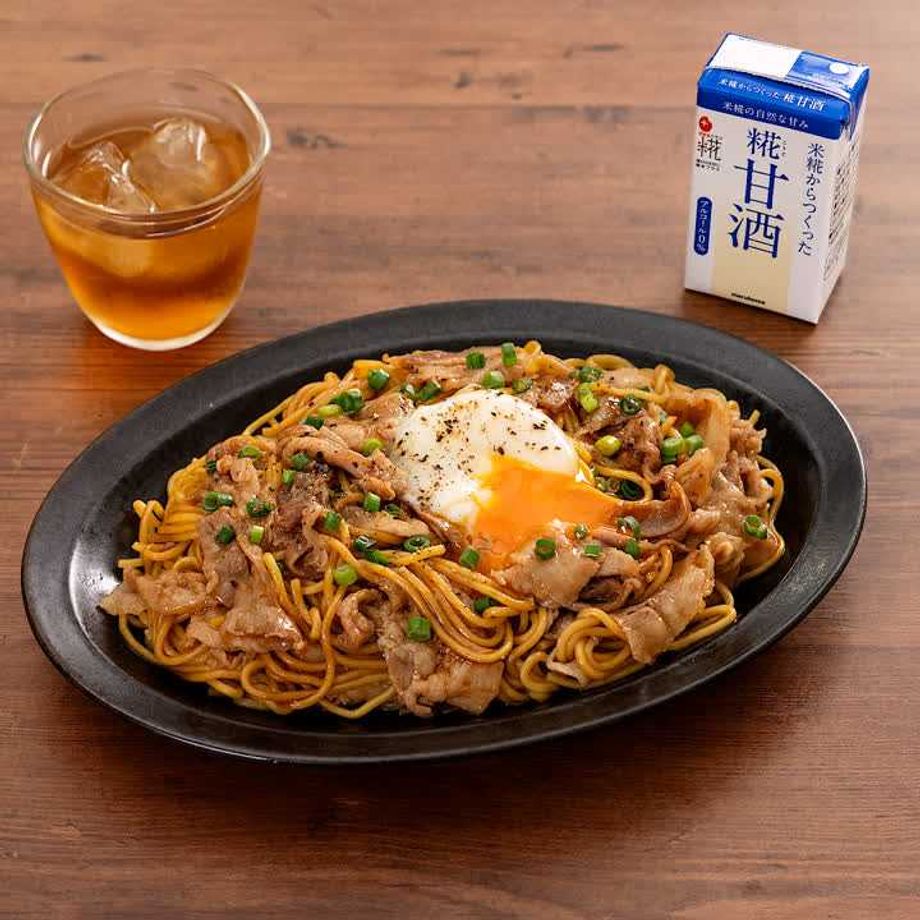 パンチのあるオイスターソースとにんにくに、 糀甘酒を加えてコク深い味わいに! 酒寄颯馬が間違えて買っちゃった温泉卵をのせれば、 麺好きの渚トラウトも唸る、大満足の一品に...!?[Presented by マルコメ株式会社]
